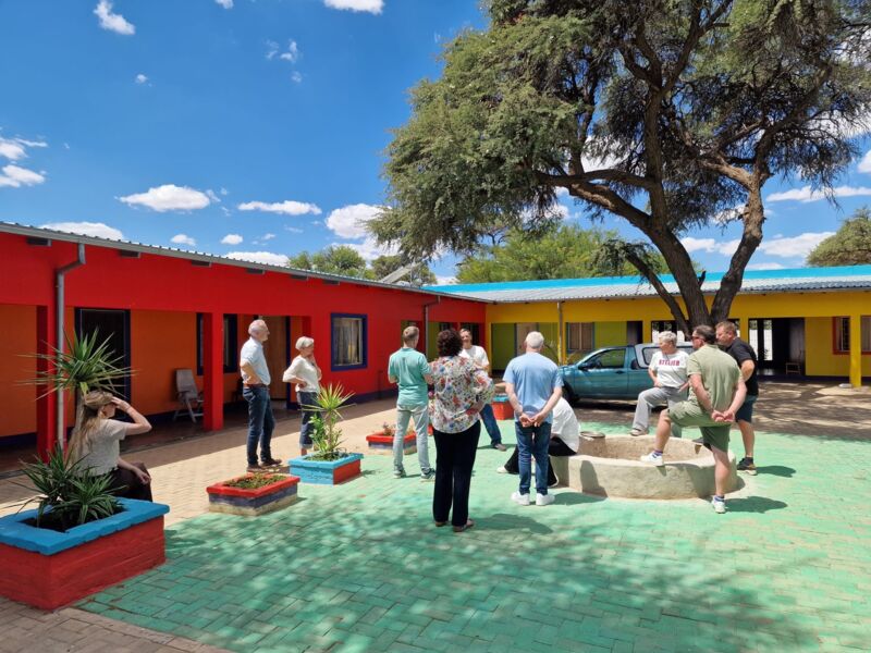 Op dit moment verblijft een mooie groep van 16 Nederlanders in Namibië. Onder leiding van René bezoeken zij de programma’s op het René Kids Centre en maken zij kennis met de mensen in Block E in Rehoboth.